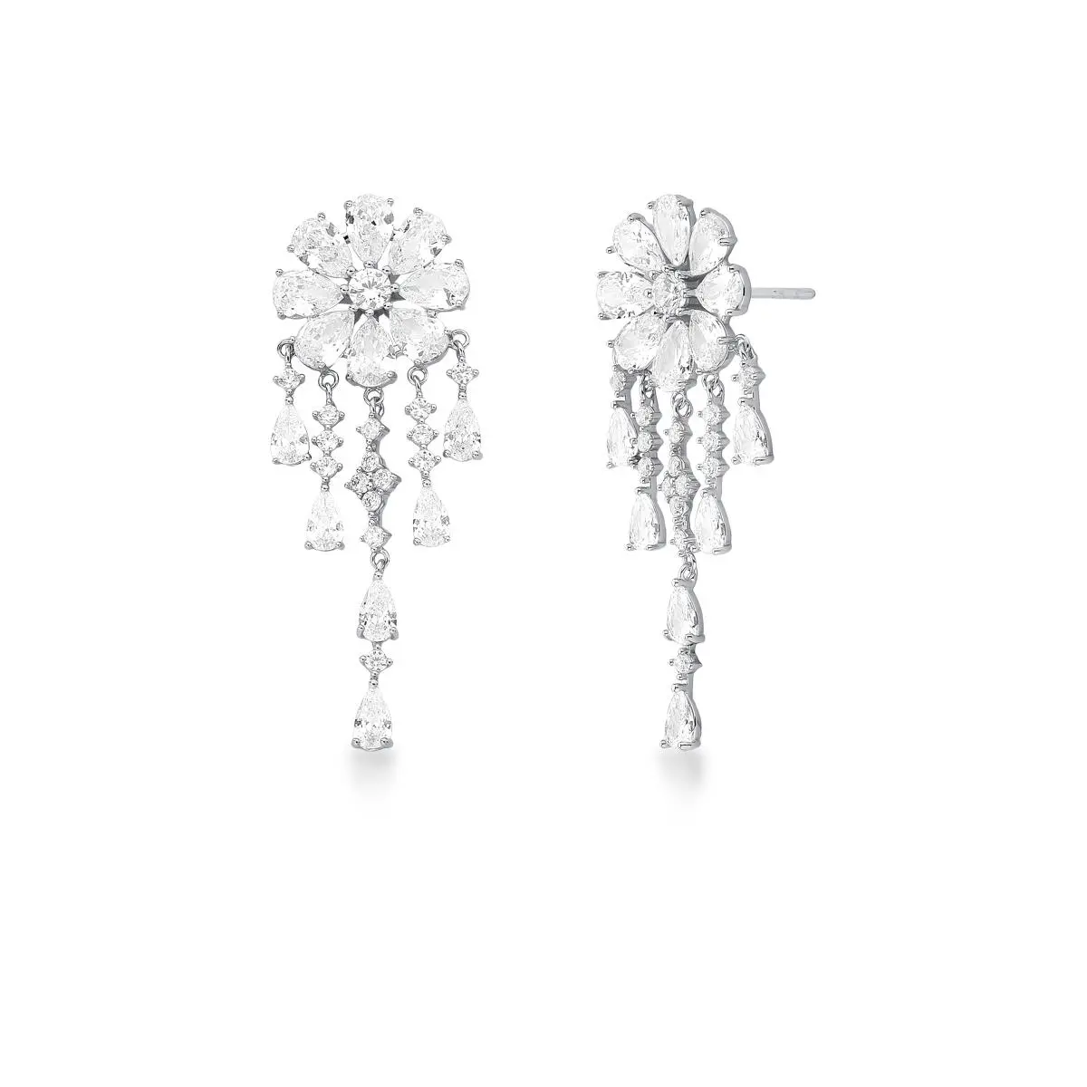 Brinco banhado em ródio branco cravejado com zircônias brancas.