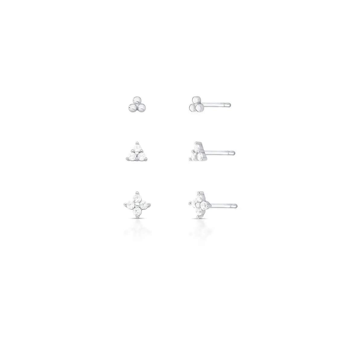 Trio de brincos prata 925 rodinada